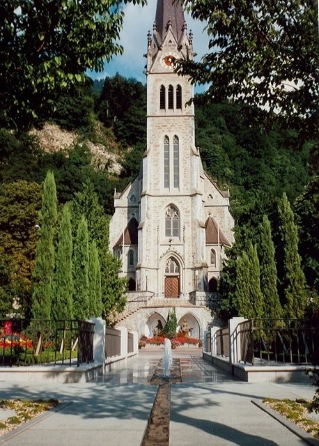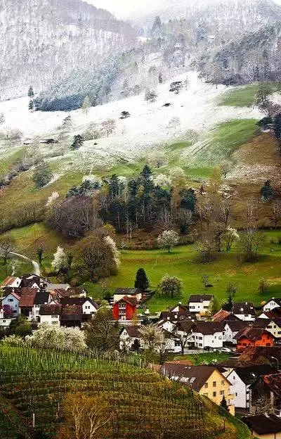 巴士沿着列支敦士登弯弯曲曲的公路在阿尔卑斯山南侧丘陵地区前行,沿途不少路边的房子都是散落分布而不是形成村落的,一幢幢房子之间都有大片的空地用来做花园和种植,漂亮的房子和悠闭的居民显出当地人生活的富足。首都瓦杜兹是一个只有5000人的小镇,没有什么很漂亮的建筑,更没有高楼大厦,只有两条主要街道,一是这个国家的主干公路,另一条就是步行街。游客基本上都集中在步行街。小小的瓦杜兹,不到半小时就转完了。