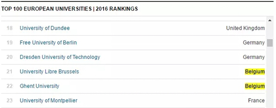 当然比利时除了鲁汶大学排名全欧洲第一之外,其他城市的几所大学也表现不俗。
