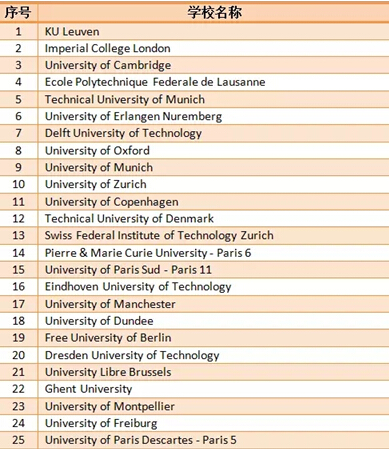 附路透社TOP100:欧洲最具创新力的大学名单(部分)
